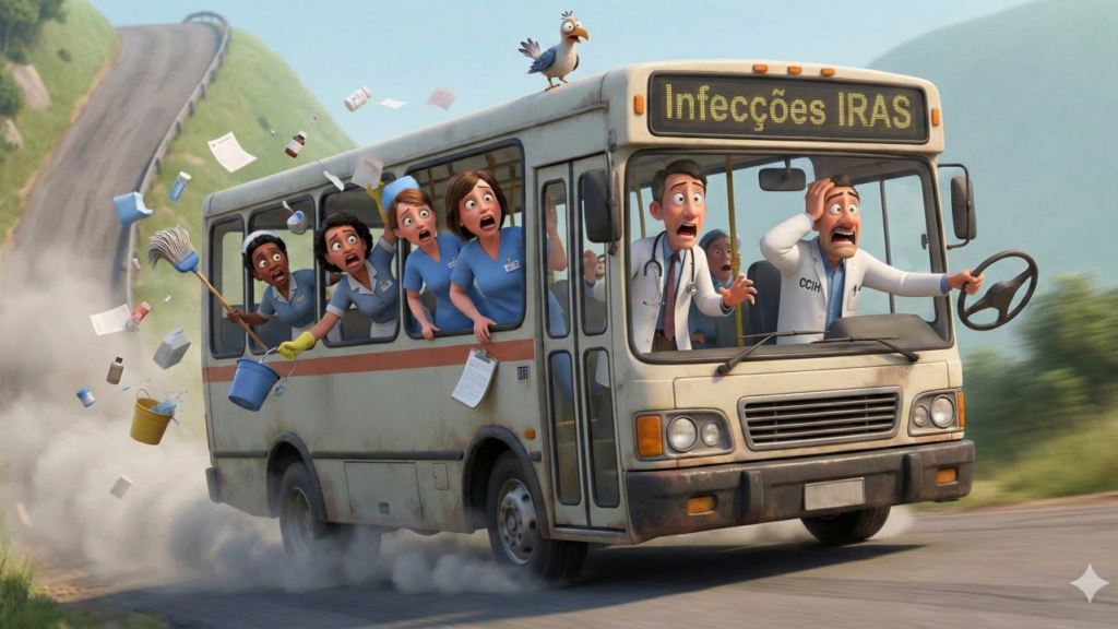 Na prática tecno-assistencial de UTIs, centros cirúrgicos e isolamentos, o que existe não é controle. É um ônibus sem freio, descendo a ladeira da entropia microbiana, enquanto a diretoria debate indicadores decorativos em salas climatizadas.